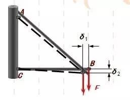 如圖,δ 遠小于構件的最小尺寸,所以通過節點平衡求各桿內力時,把支架的變形略去不計。計算得到很大的簡化。概括起來講,在材料力學中是把實際材料看作均勻、連續、各項同性的可變形固體,且在大多數場合下局限在彈性變形范圍內和小變形條件下進行研究。