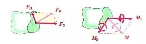 FN 為軸力,產生軸向的伸長或縮短變形;FQ 為剪力,產生剪切變形;Mx 為扭矩,產生扭轉變形;MB(My 或Mz)為彎矩,產生彎曲變形。