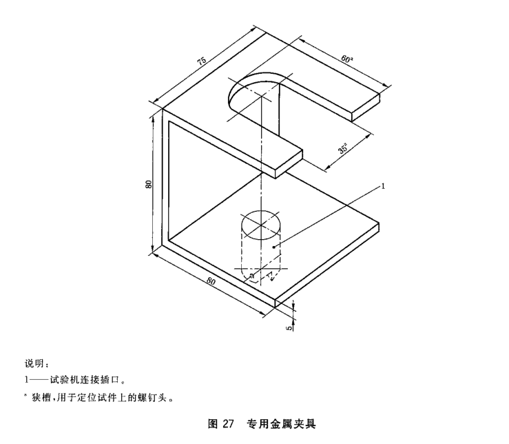 夾具數量:上夾具體一只,下夾具體一只,專用卡頭一個,開孔鋼墊片一個,鋼板一塊,共5個件(下夾具體可與方法一共用)。