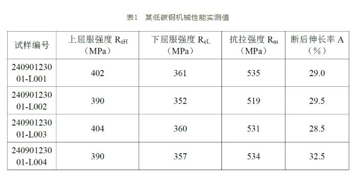 一般低合金鋼的上屈服強度比下屈服強度高出10%左右,如表1所示某低合金鋼實測ReH、ReL。