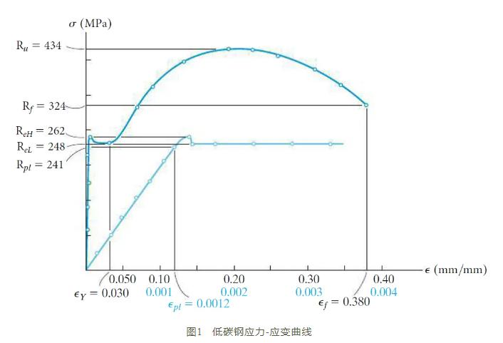 如圖1所示某鋼材應力-應變曲線,ReH、ReL分別代表材料屈服階段的最大值和最小值。