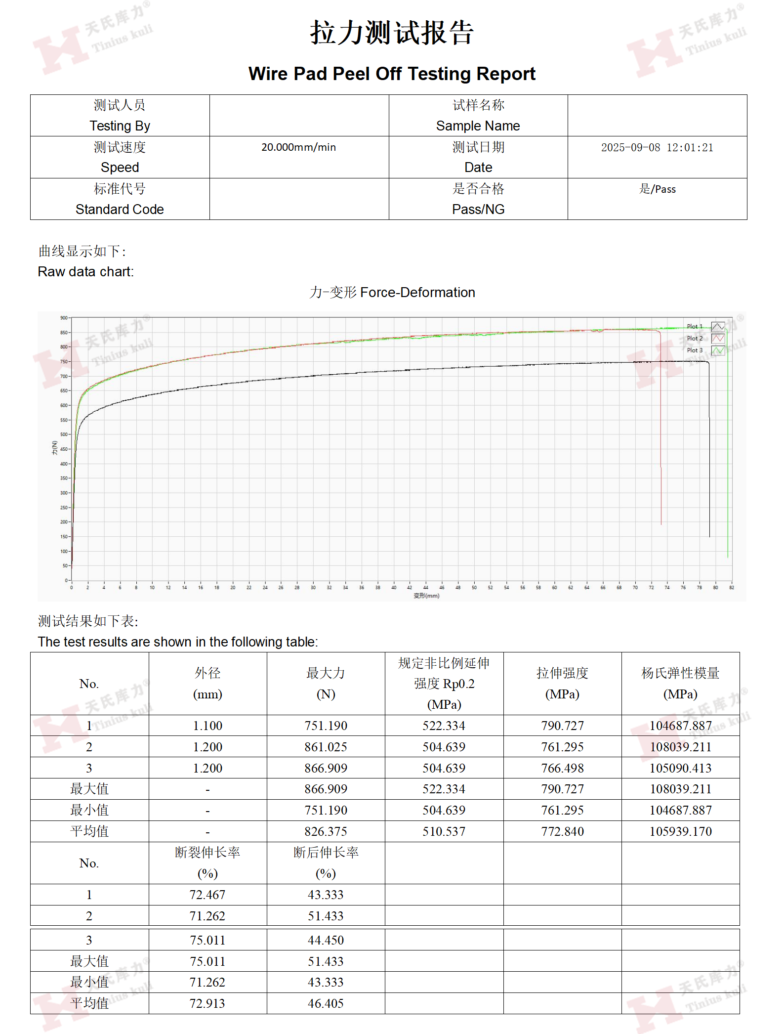 對進貨鋼絲進行批量化拉伸測試,是確保原材料質量、避免生產事故的有效手段。完整的測試報告可用于建立質量檔案,實現產品全生命周期的質量追溯。