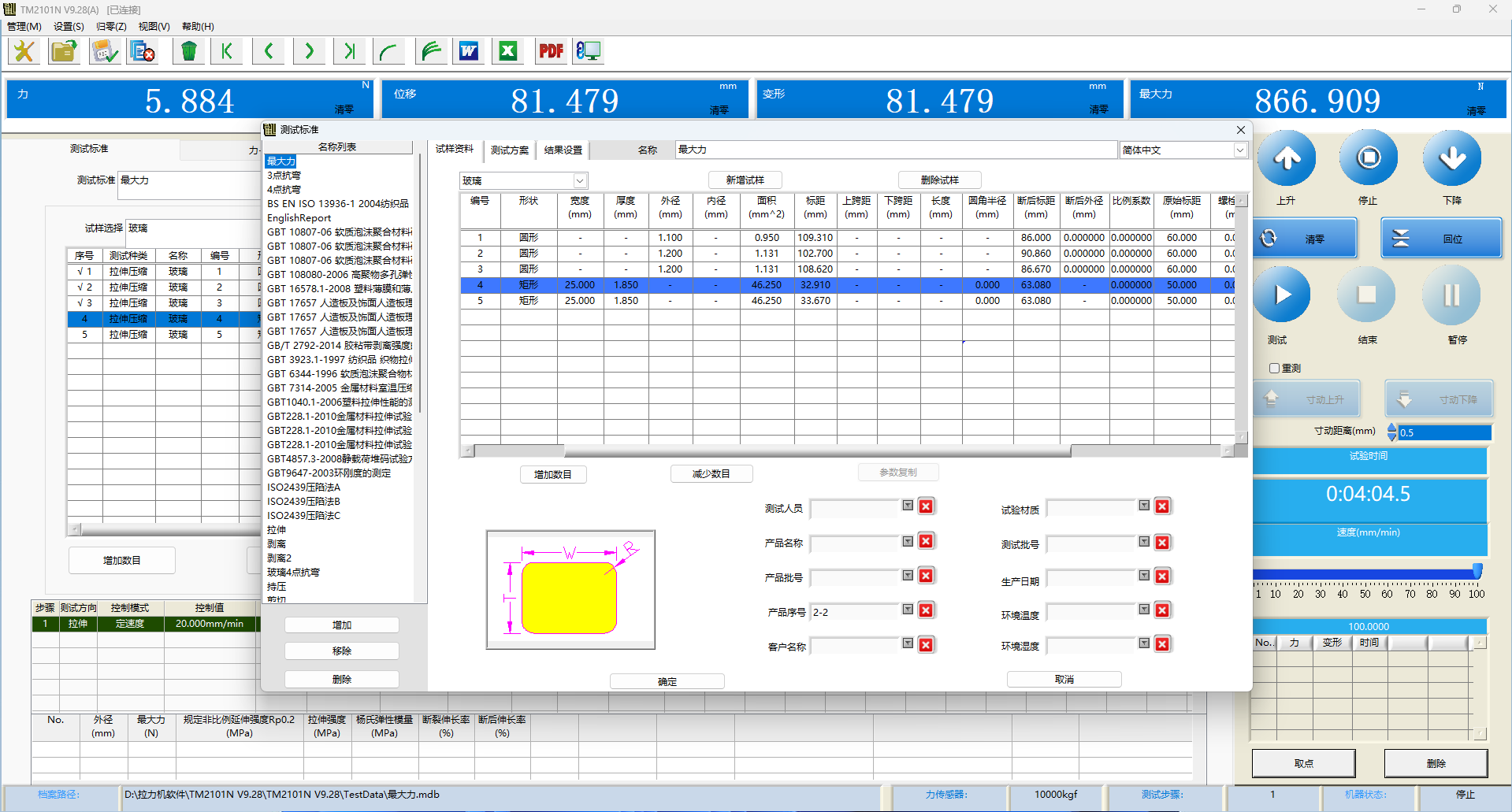 專業軟件自動實時采集載荷-位移/變形數據,并一鍵生成包含所有關鍵指標(Rp0.2, Rm, A%, Z%)的測試報告,自動判斷結果是否符合預設標準。