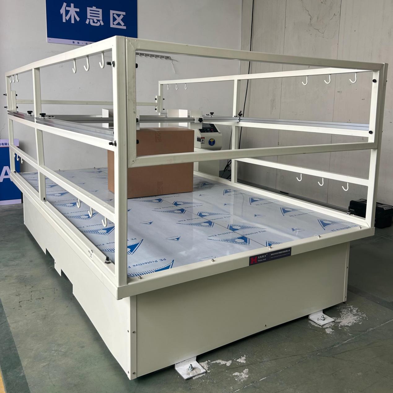 1.樣品準備與固定:將待測產品(包括其完整的銷售包裝)放置在振動臺臺面上。利用設備配備的可拆卸導軌式夾具,將樣品牢固地固定在臺面中央,防止測試過程中滑出。