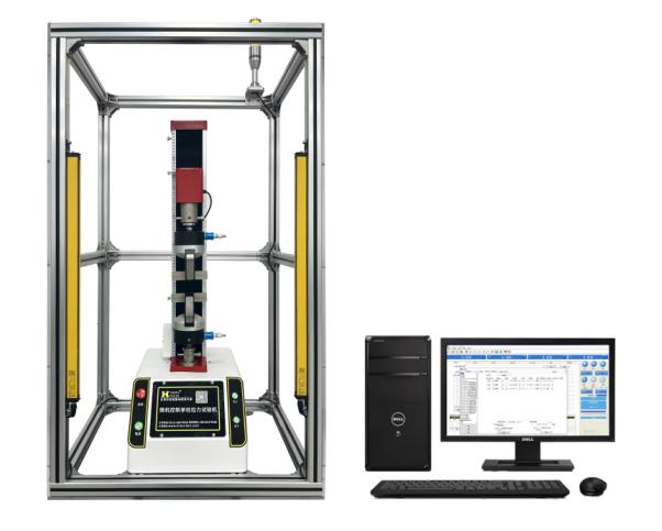 單柱拉力試驗機采用高剛性單柱式結構與高精度伺服電機驅動系統(tǒng),通過同步帶傳動帶動橫梁上下移動,實現(xiàn)對試樣的拉伸加載。測試時,試樣兩端通過夾具固定,傳感器實時采集加載過程中的力值信號,位移傳感器同步記錄橫梁移動距離,數(shù)據(jù)傳遞至智能控制系統(tǒng)后,依據(jù)預設標準自動計算抗拉強度、剝離強度、斷裂伸長率等參數(shù)。